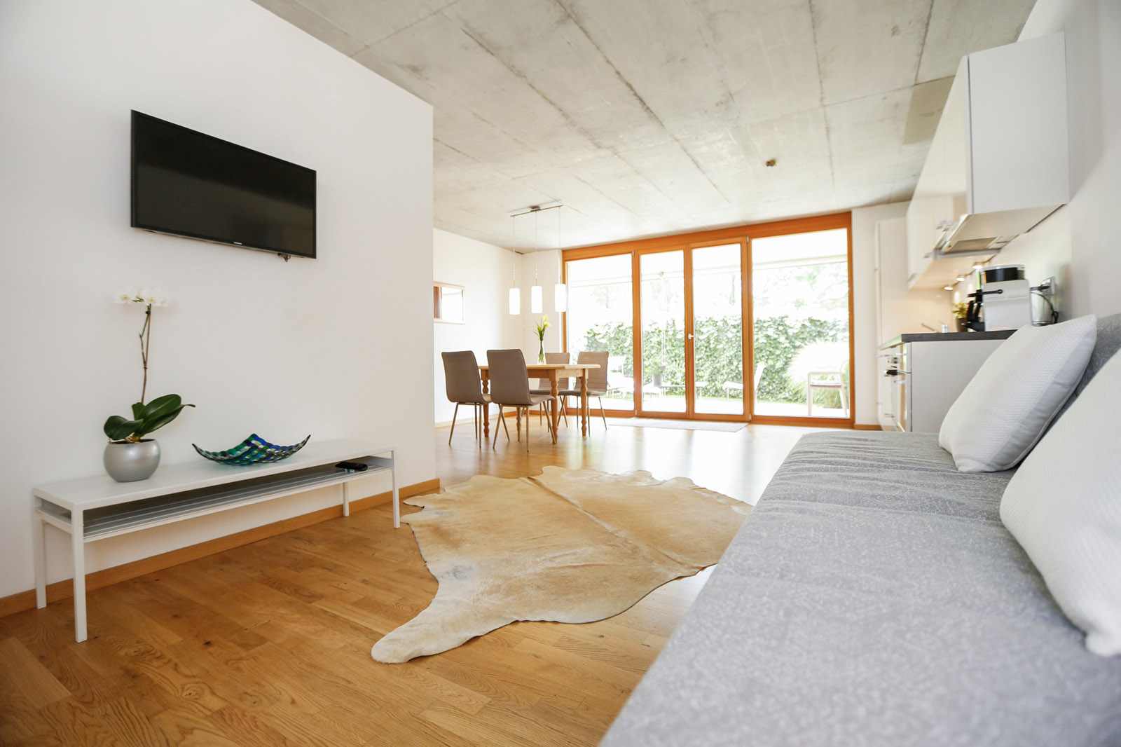Wohnraum mit Sofa + TV